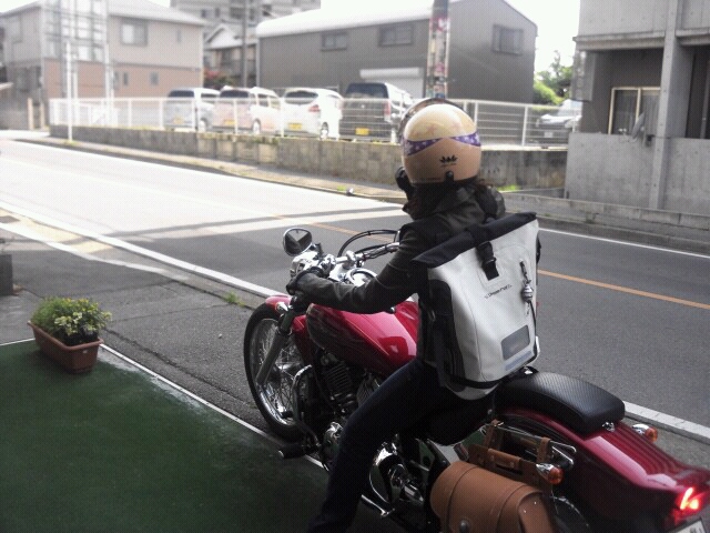 わっしょいで購入してくれたストリームトレイルの防水バックを背負いライダーが遊びに来てくれました(^o^)