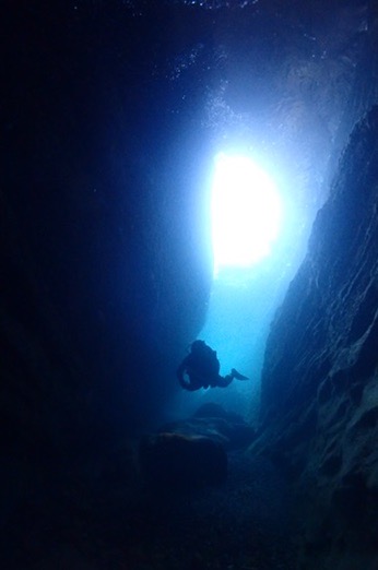 洞窟のポイント以外は透明度が5メートル、