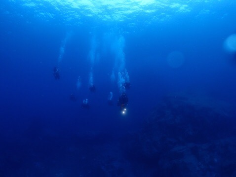流れは強かったですが、越前ブルーが見れました! 透明度20m 水温25~26度